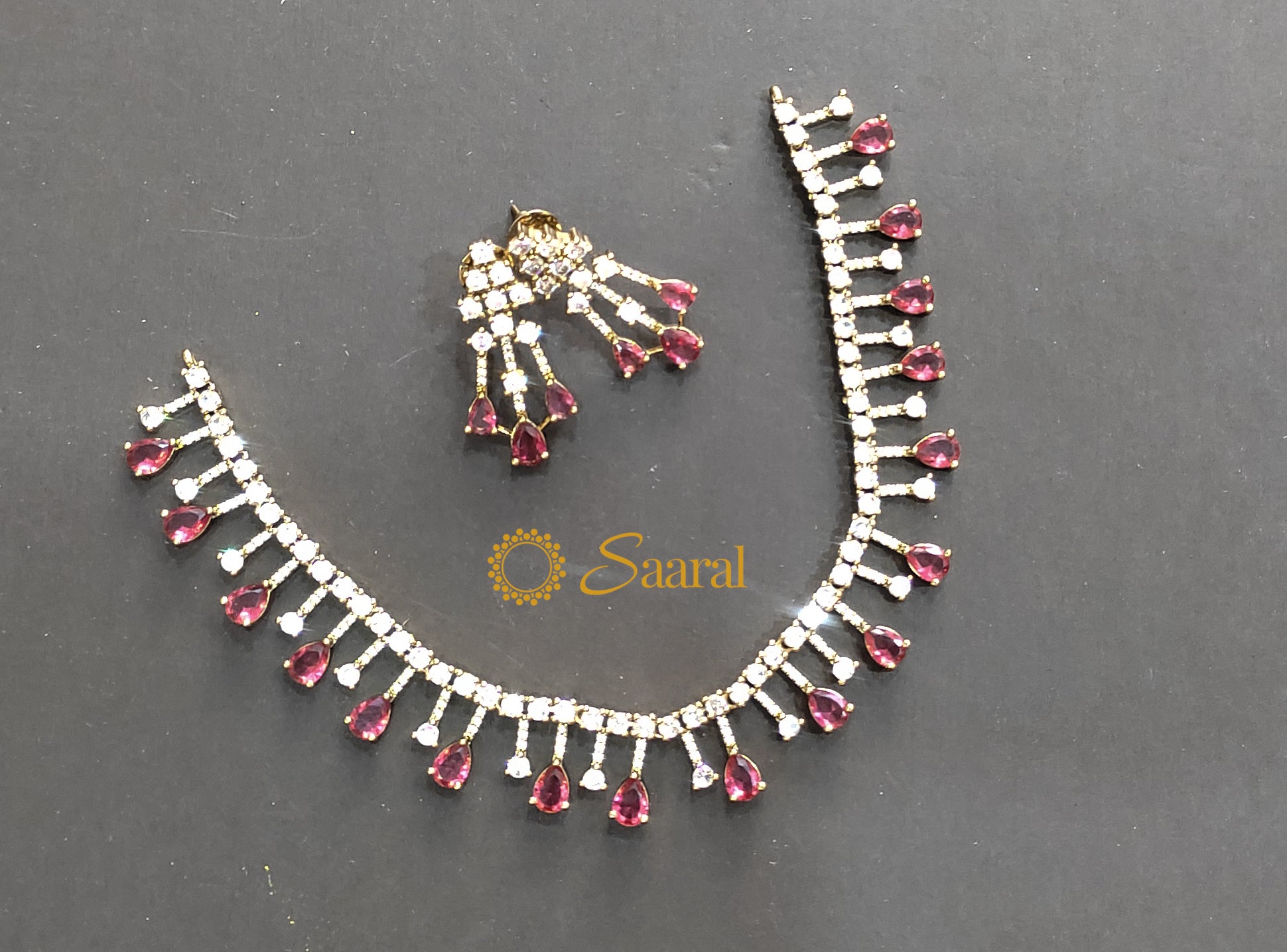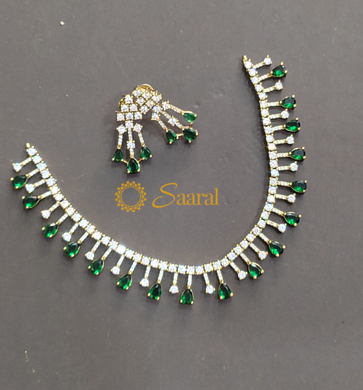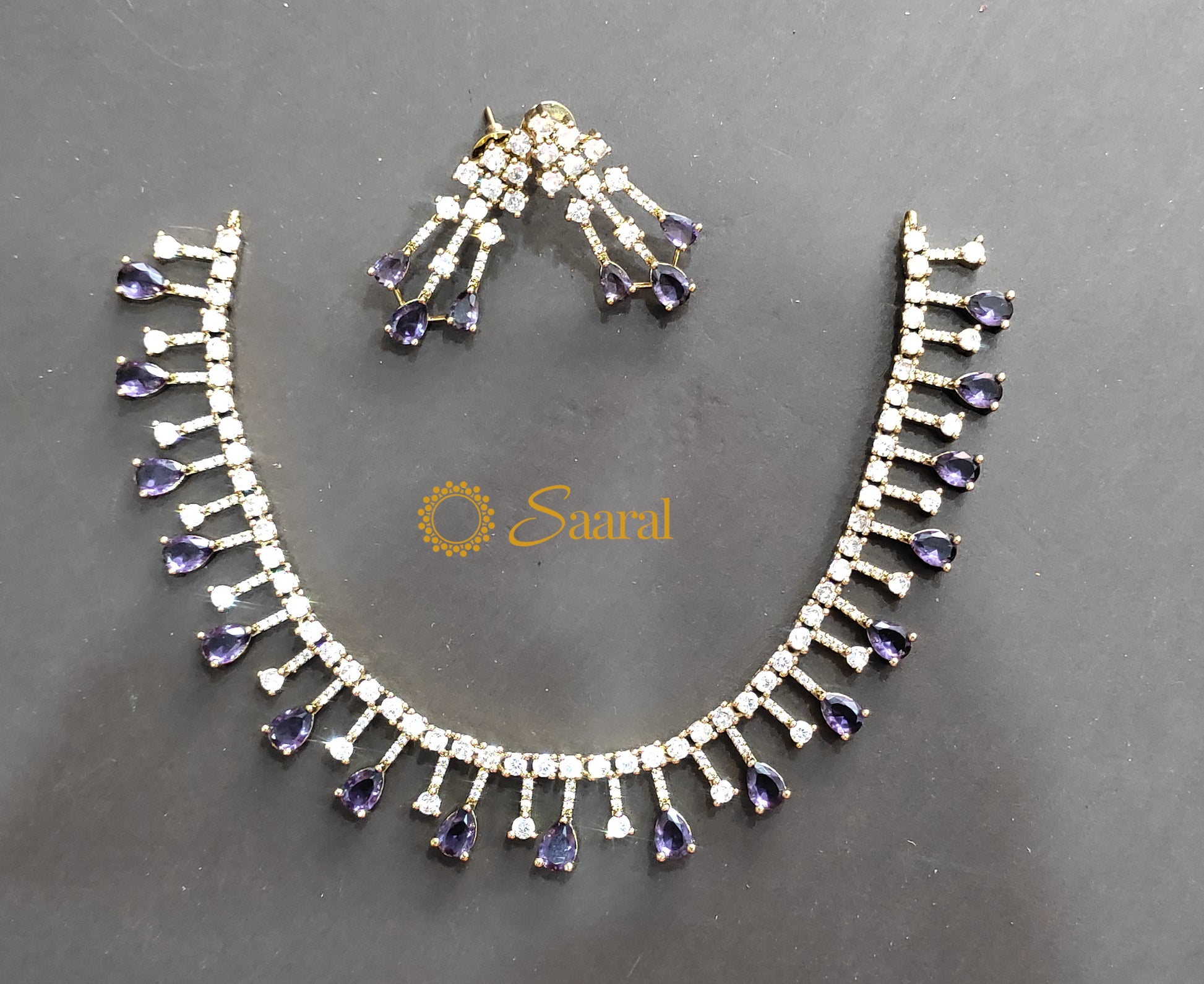 Elevate your evening ensemble with this exquisite AD stone choker set, available in three captivating variants: green, red, and violet, each featuring alternating white stones for a striking contrast. Expertly crafted to add a touch of elegance, this set complements traditional and contemporary outfits, making it perfect for special occasions and festive wear. Its vibrant colors and intricate design ensure you stand out with grace and style.