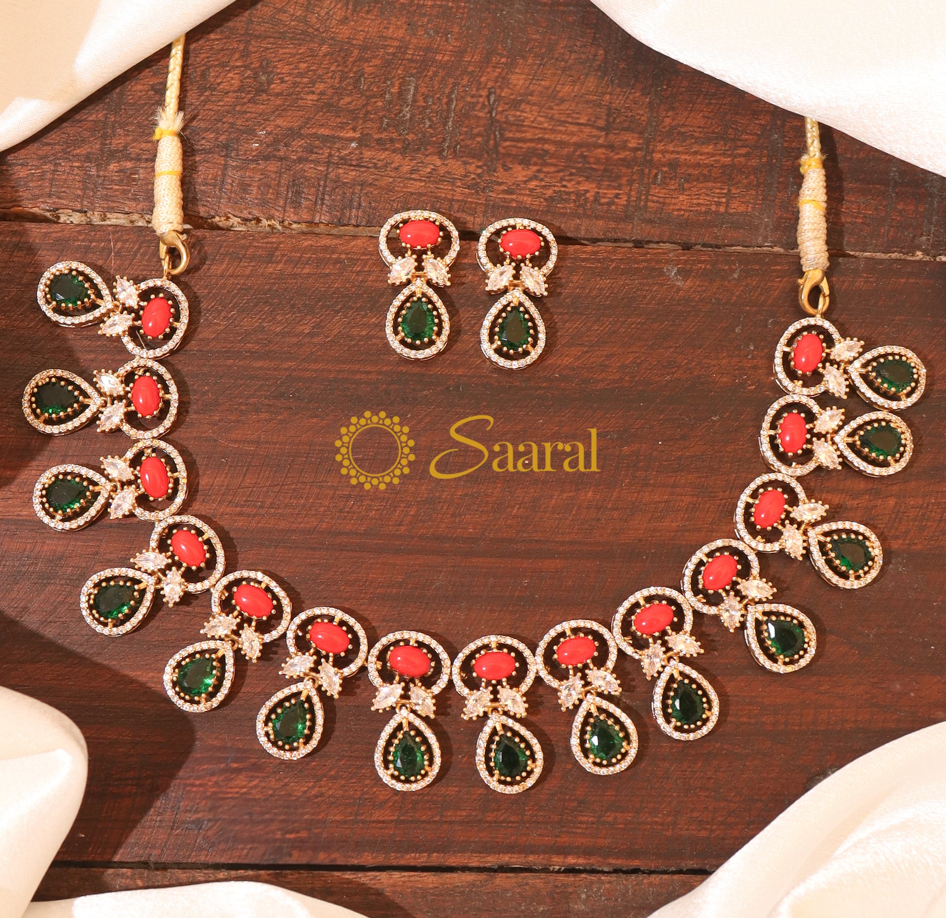 This exquisite AD accessory, adorned with green and red stones, complements both silk and fancy sarees effortlessly. Its elegant yet simple design adds a dashing touch to your ensemble, making it a versatile choice for various occasions. Perfect for enhancing traditional attire with a refined and expert flair.