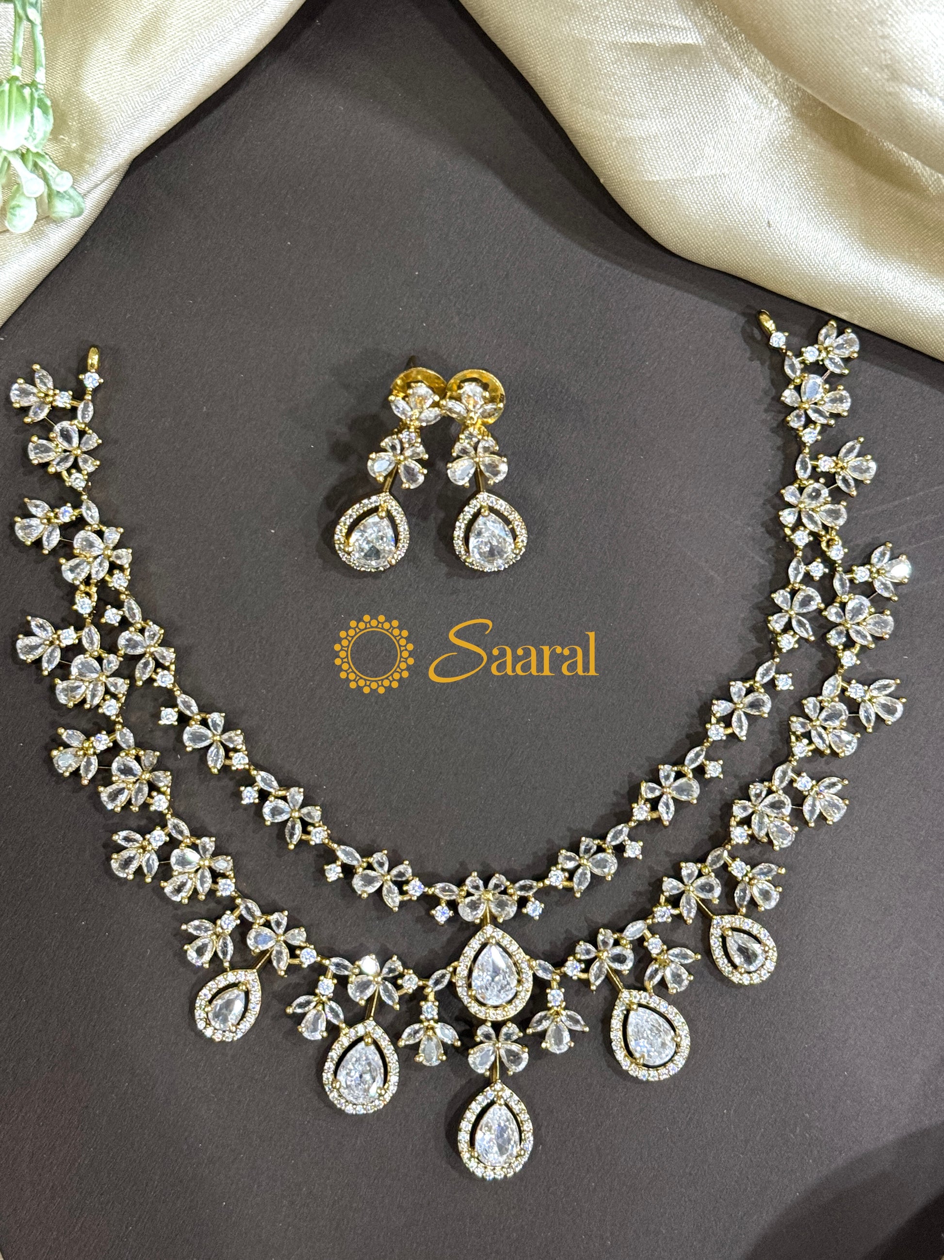 This two-layer neckset features exquisite white stones that add a touch of elegance and sophistication. Its layered design creates a stunning visual appeal, making it a versatile accessory for both formal and casual occasions. Crafted to enhance your style effortlessly, this neckset offers a great look that complements a variety of outfits.